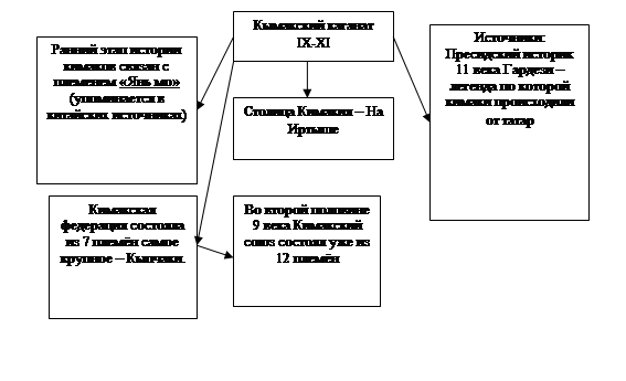 Кимаки были выходцами из Монголии. Обособление племён произошло после распада западно-тюркского каганата. Территория: Север Алтайских гор при Иртышье - северо-восточный Казахстан. Рубежи проживания кимаков стабилизировались в начале 10 века. Предводитель кимаков - титул кагана в конце 9 начала 10 века. Обладал реальной властью - назначал удельных правителей именной знати, власть кагана передавалась по наследству. В кагане формировалась удельно-племенная система. Владелец уделов стремился укрепить политический вес, хотя находились в подчинении у кагана. Причиной распада были междоусобицы и борьба за власть.