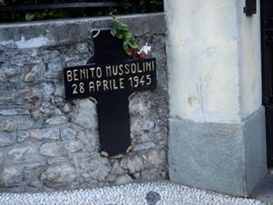 Памятный знак на месте расстрела Муссолини