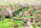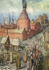 По произведениям Васнецова можно восстановить этапы развития русской столицы. Вот «Основание Москвы. Построение первых стен Кремля Юрием Долгоруким в 1156 году» (1917) - немного наивнопростодушное изображение строительства деревянных стен крепости, где какие-то указания дает толпе простого люда сам князь. Более убедительно выглядит акварель 1903 года «Город строится. Строительство деревянных стен Кремля. XII век». Вот «Московский Кремль при Иване Калите. Середина XIV века» (1921) - живописно раскинулся на холме деревянный город, представленный в холодновато-голубоватой дымке зимнего дня.