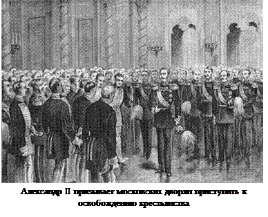 Еще в 1856 году император, принимая у себя представителей дворянства, сказал им о своем намерении проведения крестьянской реформы. По его мнению "лучше начать уничтожать крепостное право сверху, нежели дождаться того времени, когда оно начнет само по себе уничтожаться снизу."