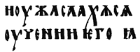 УСТАВ - медленное, торжественное письмо, буквы строго вертикальны, тяжелая прочная основная стойка, тонкие дополнительные штрихи и засечки. Пропорции буквы приближены к квадрату. Каждая буква писалась отдельно, в несколько приемов руки. Перо, которым писался устав, было ширококонечным. Это ранняя форма кириллицы. Изменение формы уставного письма зависело и от инструмента. Писали или тростью (тростниковой палочкой), или пером (гусиным, лебединым, павлиньим). На почерк влиял очин пера, который менялся со временем и вел к изменению почерка. Так, срез кончика пера становился все острее и отношения толстых и тонких штрихов становились менее контрастными.