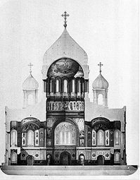 Рис. 5. Эскиз больших киотов храма. Архитектор К. Тон. Бумага, тушь, акварель.