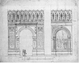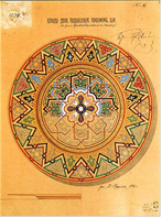 Рис. 4. Проект внутренней облицовки и ажурных врат порталов храма. Архитектор К. Тон. Чертил академик С. Дмитриев. Бумага, тушь, акварель