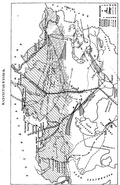 Завоевание Иваном IV Казанского (1552), Астраханского (1556) ханств, Юго-Западной Сибири', установление Камского торгового пути облегчали непосредственные контакты и с Казахским ханством. Интерес Русского государства в Казахстану особенно возрос со 2- i \ половины XV—XVI вв., после установления торговых и дипломатических отношений России со среднеазиатскими ханствами.