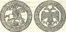 Говоря о предыстории происхождения изображения двуглавого орла на государственной печати Руси в конце XV века, нельзя забывать и о более ранней русской традиции - одноглавом орле владимиро-суздальских соборов, одноглавом орле - эмблеме московской власти на печатях Великого Новгорода XV века. Однако и эта традиция, названная нами выше "русской", возможно, тоже является общеевропейской, так как указанные орлы имели много сходства с современными им европейскими.