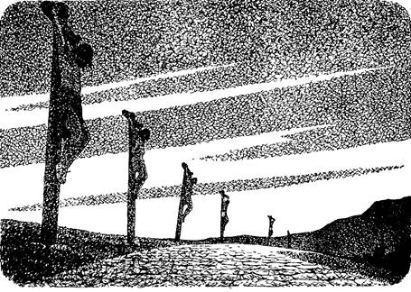 Шесть тысяч рабов, попавших в плен, были распяты на крестах вдоль дороги, ведущей из Капуи в Рим. На юге еще долго отдельные группы, скрывавшиеся в горах, продолжали бороться против римских войск. Крупному отряду в пять тысяч человек даже удалось пробиться на север. Но там их встретил Помпей и всех до одного уничтожил.