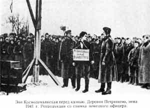 Но откуда появилась Зоя Космодемьянская? Постепенно все превратилось в трагифарс. В. Леонидов пишет: "Немцы ушли. Через некоторое время в деревню приехала комиссия, с нею 10 женщин. Выкопали Таню. Никто в трупе не определил своей дочери, ее снова закопали. В газетах появились фотографии издевательств над Таней, девушке присвоили звание Героя Советского Союза. Вскоре после этого указа приехала комиссия с другими женщинами. Вторично вытащили из могилы Таню. Началось представление. Каждая женщина в Тане опознавала свою дочь. Слезы, причитания по погибшей. А потом, на удивление всех жителей деревни, завязалась драка за право признать погибшую своей дочерью. Всех разогнала длинная и худая женщина, впоследствии оказавшаяся Космодемьянской. Так Таня стала Зоей".
