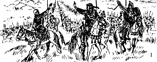 Итак, передовой отряд скифской конницы, состоявший из лучших всадников, в основном, видимо, из молодежи, двинулся навстречу персам. Их огромное войско уже ползло широкой нескончаемой волной по скифской степи. Еще не видели бескрайние степные просторы, буйные травы, полноводные реки, густые дубравы такого нашествия людей. Размеренно шагала, глотая пыль, пехота, не спеша передвигалась конница, скрипели телеги, ржали лошади, ревели быки и ослы, кричали погонщики. Убегали с насиженных мест звери, улетали птицы. Тревожной была степь. Великая беда надвигалась.