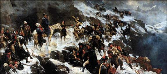 28 августа русская армия выступила из Алессандрии, а 4 сентября была уже в Таверне, у подножия Альп. Суворову и его чудо-богатырям предстояло совершить немыслимое: осенью перейти высочайшие вершины Альп, одновременно сражаясь с превосходящими силами французов, занявших заранее выгодные позиции. При этом русские храбрецы были страшно утомлены, голодны и оборваны.По совету австрийцев, Суворов избрал кратчайший путь на Беллинцону, Сен-Готард, долину Рейссы к озеру Четырех кантонов. Однако подлые союзники утаили главное :вдоль озера дорог не было, и русская армия попадала в тупик.