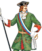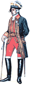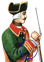 С переходом в 1702 году на мундир "французского" образца унтер-офицеры стали отличаться от солдат серебряным галуном по краю шляпы и таким же галуном обшлагов рукавов.