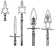 Эспантон, протазан (партазан), алебарда собственно являются старинным оружием древкового типа. Эспантон и протазан оружие колющее, а алебарда колюще-рубящее. К концу 17 века с развитием огнестрельного оружия все они уже безнадежно устарели. Трудно сказать, чем руководствовался Петр I, вводя на вооружение унтер-офицеров и офицеров пехоты вновь создаваемой Русской Армии эти древности. Вероятнее всего по образцу западных армий. Как оружие они не играли никакой роли, но сыграли свою роль в качестве определителя чинов, наряду с офицерским шарфом и горжетом Вероятно также, что они использовались и для подачи сигналов (команд) в строю.