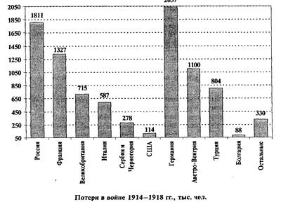 Дело не только и не столько в человеческих жертвах Великой войны, дело не в огромных материальных и финансовых потерях. Хотя эти потери многократно превысили осторожные подсчеты довоенных теоретиков, называть их «неисчислимыми» или «превосходящими человеческое воображение» неоправданно. В абсолютных цифрах людские потери были меньше, нежели от эпидемии гриппа 1918 - 1919 гг., а материальные - уступали последствиям кризиса 1929 г. Что же касается относительных цифр, то Первая Мировая Война не выдерживает никакого сравнения со средневековыми чумными эпидемиями. Тем не менее, именно вооруженный конфликт 1914 г. воспринимается нами (и воспринимался современниками) как страшная, непоправимая катастрофа, приведшая к психологическому надлому всю европейскую цивилизацию.
