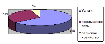 В ряду наиболее характерных показателей, которые дают представление о состоянии мировой экономики, выделим структуру производства в мире в виде диаграммы (рис. 2.1), где представлены доля добавленной стоимости в % ВВП для промышленности, сельского хозяйства и сферы услуг по состоянию на 2004г.