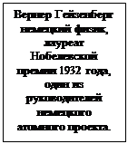 А в США работа тем временем идет по двум направлениям: выделение урана-235 из природной смеси, а точнее – поиск наиболее эффективного метода разделения изотопов урана, и сооружение ядерного реактора для наработки плутония-239, который, как и уран-235, годился для "томной" бомбы. Первый в мире реактор был запущен в США под руководством Энрико Ферми в декабре 1942 года.