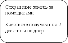 Крестьяне освобождаются с землей, без переходного периода (т.е. сразу)