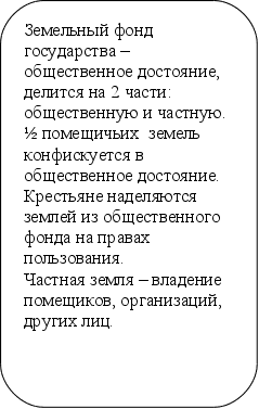Крестьянин получает землю (минимальный надел определяется губернскими комитетами).