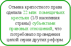 Переходный период - 20 лет, в течение которого крестьянин платит оброк или отрабатывает (выкуп).