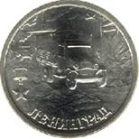 Монета с ценностью в 2 рубля; название «Ленинград»; серия, посвященная 55-я годовщина Победы в Великой Отечественной войне 1941-1945гг. Выпуск 4 мая 2000. Состав- сплав меди и никеля; диаметр 23,0мм.