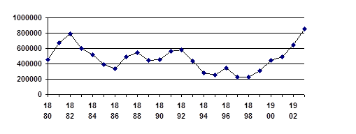 График 1. Иммиграция в США, общее количество иммигрантов (1880-1903).*