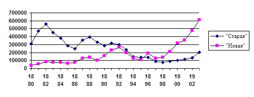 График 2. «Старая» и «новая» иммиграция (1880-1903).*