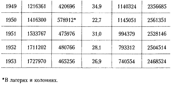 В середине 1930 года около 140 000 заключенных уже работали в лагерях, управляемых ОГПУ. Одно только огромное строительство Беломорско-Балтийского канала требовало 120 000 рабочих рук, иными словами, значительно ускорялся перевод из тюрем в лагеря десятков тысяч заключенных. В начале 1932 года более 300 000 заключенных отбывали повинность на стройках ОГПУ, где ежегодный процент смертности равнялся 10% от общего количества заключенных, как это было, например, на Беломорско-Балтийском канале. В июле 1934 года, когда проходила реорганизация ОГПУ в НКВД, ГУЛАГ включил в свою систему 780 небольших исправительных колоний, в которых содержались всего 212 000 заключенных; они считались экономически малоэффективными и неудовлетворительно управляемыми и зависели тогда только от Народного комиссариата юстиции. Чтобы добиться производительности труда, приближающейся к той, что была в целом по стране, – лагерь должен был стать большим и специализированным. 1 января 1935 года в объединенной системе ГУЛАГа содержалось более 9б5 000 заключенных, из которых 725 000 попали в «трудовые лагеря» и 240 000 – в «трудовые колонии», были и небольшие подразделения, куда попадали менее «социально опасные элементы», приговоренные к двум-трем годам.