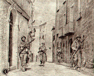 Союзники после завершения борьбы в Сев. Африке провели Сицилийскую операцию 1943, начавшуюся 10 июля. Располагая абсолютным превосходством сил на море и в воздухе, они к середине августа овладели Сицилией, а в начале сентября переправились на Апеннинский п-ов (см. Итальянская кампания 1943— 1945)- В Италии нарастало движение за ликвидацию фаш. режима и выход из войны. В результате ударов англо-амер. войск и роста антифаш. движения в конце июля пал режим Муссолини. Его сменило пр-во П. Бадольо, подписавшее 3 сент. перемирие с США и Великобританией. В ответ гитлеровцы ввели в Италию дополнит. контингента войск, разоружили итал. армию и оккупировали страну. К нояб. 1943, после высадки англо-амер. десантов в Салерно, нем.-фаш. командование отвело свои войска к С., в р-н Рима, и закрепилось на линии pp. Сангро и Карильяно, где фронт стабилизировался.