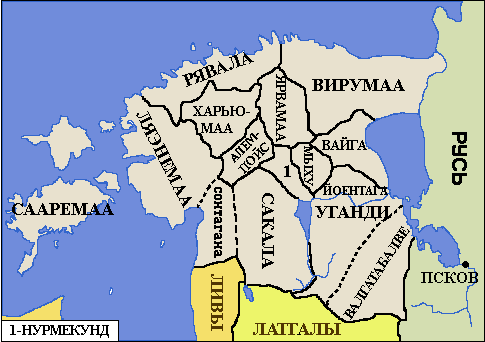 Рис. 1. Эстонские области в нач.XIII века