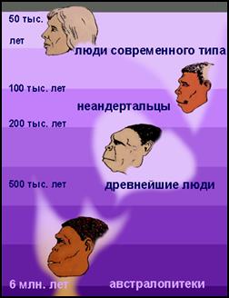 Время появления человека современного вида приходится на начало позднего палеолита (70-35 тыс. лет назад). Оно связано с мощным скачком в развитии производительных сил, становлением родового общества и следствием процесса завершения биологической эволюции Homo sapiens.
