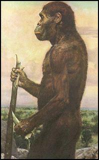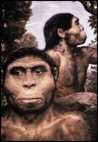 Австралопитеков - высокоорганизованных, прямоходящих приматов, принято считать исходными формами в родословной человека. Австралопитеки унаследовали от своих древесных предков способность и стремление к разнообразному обращению с предметами при помощи рук (манипулированию) и высокое развитие стадных отношений. Они были наземными существами, сравнительно небольших размеров – в среднем длина тела 120-130 см, вес 30-40 кг. Их характерной особенностью была двуногая походка и выпрямленное положение тела, о чем свидетельствует строение таза, скелета конечностей и черепа. Свободные верхние конечности давали возможность использовать палки, камни и т.д. Мозг имел относительно крупный размер, а лицевая часть была укорочена. Зубы небольшие, располагались плотно, с рисунком зубов, характерным для человека. Обитали на открытых равнинах. Если судить по находке Луиса Лики, то возраст австралопитеков 1,75 млн. лет. Рис.2 Австралопитек.