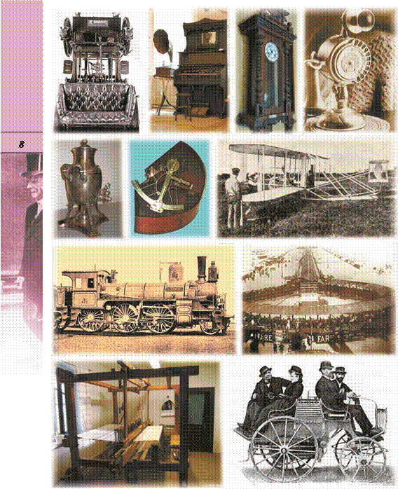У цьому колажі використано чимало предметів побуту, характерних для кінця ХІХ – початку ХХ ст.: від друкарської машинки до телеграфного апарата. Спробуйте назвати якомога більшу кількість з них. Які з цих предметів використовуються й до сьогодні? Які зміни відбулися в них?