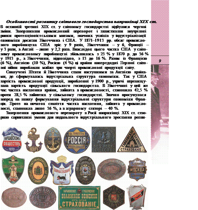 нутих регіонів імперії. За темпами розвитку промисловості Росія випереджала Англію, Францію, а у 90-х роках – навіть Німеччину і США. Проте швидкість цього процесу була відносною. Низький стартовий рівень та залишки феодальних відносин не дозволили Росії змінити свої позиції у світовому виробництві й піднятися вище традиційного 5 місця. У 1871–1913 рр. її частка у світовій обробній промисловості збільшилась лише з 3,7 до 5,5 %. У загальному ж обсязі промислового виробництва частка Росії лише трохи перевищувала 4 %.