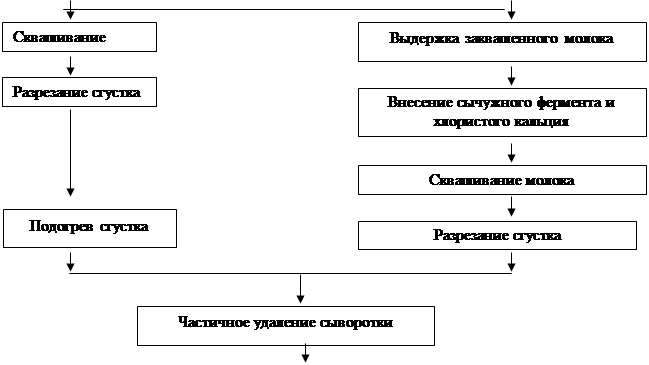 При производстве творога одной из основных операций считается сквашивание молока, вызывающее коагуляцию белков и образование сгустка. Исходя из этого, существуют два основных способа коагуляции: кислотный и кислотно-сычужный. При кислотном способе коагуляция казеина происходит в результате молочнокислого брожения. При кислотно-сычужном способе коагуляция казеина и образование сгустка происходит под действием молочной кислоты и сычужного фермента или пепсина.