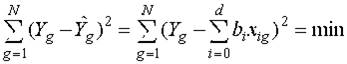 где Y g - экспериментальные значения выходного параметра, полученные в g-й точке факторного пространства;