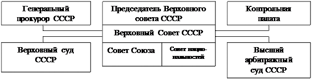 Осуществление государственной власти СССР в 1990 – 1991 гг. мржно представить в следующей таблице (приведена в книге В. З. Черняка История государственного и муниципального управления России. С. 449.)