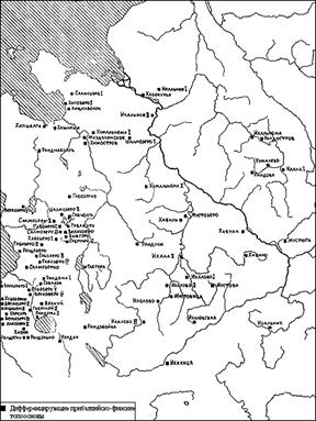 Карта № 1 Дифференцирующие прибалтийско-финские топоосновы