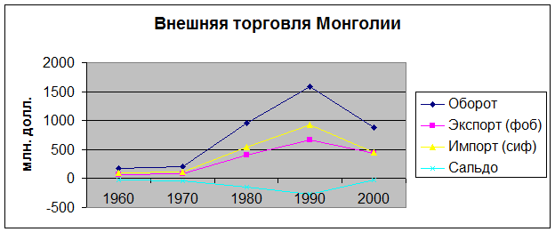 Внешняя торговля Монголии в 1960-2000 гг.