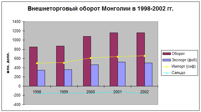 Внешнеторговый оборот Монголии в 1998-2002 гг.