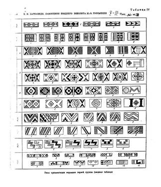 Наиболее ярким выражением данного кода, как мне представляется в настоящее время, является тип орнамента сохраненного керамикой, созданной представителями городской цивилизации юга Средней Азии V-II тыс. до н. э. Данные орнаменты нами будут узнаны во всех индоевропейских культурах и цивилизациях от омываемых океаном скалистых берегов Ирландии до островов Средиземного моря и до долины реки Инд. Источником же, некогда породившим и выпестовавшим художественный код, отличающийся симметрией и тем, что можно назвать гармонией красоты, возведенной в непререкаемый закон, является центр, или чрево континента, древняя кузница великой индоевропейской цивилизации.