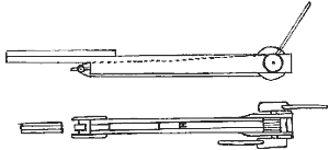 По существу, онагр представляет собой одноплечевой палинтон. Упругий элемент в нем один и, в отличие от двухплечевых машин, расположен горизонтально (Рис.7). В конструкции онагра наконец-то происходит полный отказ от миметического следования внешней форме лука и своеобразный откат к принципу пращи.