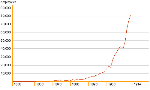 Тот способ работы, который был присущ старому опытному мастеру Гальске, бывший в свое время и успешным, и привлекательным и очень распространенным, был бы немыслим в современном производстве. Теперь продукция выпускалась при помощи станков, вывезенных из США. Она имела соответствующие твердо установленные нормативы, само изготовление продукции было значительно упрощено и поставлено на поток. Теперь, в 1872 году, когда фирма "Сименс и Гальске" существовала уже 25 лет, она насчитывала почти 1600 сотрудников.