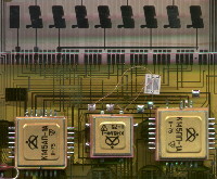 В этом калькуляторе были использованы прозрачные платы с объемным монтажом. На рисунке показана часть платы микрокалькулятора.