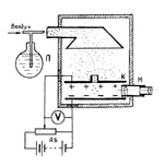 Американский физик Роберт Милликен в 1906 г. предположил, что если поместить в электрическом поле заряженную мельчайшую капето можно определить величину электрического заряда этой капельки. Он сделал установку, упрощенный вид которой изображен на рис. 2.