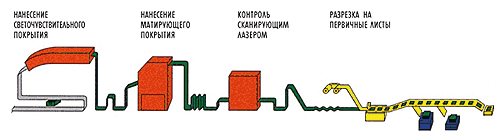 За процессом зернения следует нанесение светочувствительного слоя на шероховатую поверхность. Эта ответственная операция должна выполняться при специальных условиях, обеспечивающих полное отсутствие пыли. Специальное отделочное покрытие Љ матирующее напыление, наносится после сушки эмульсионного слоя. Это покрытие сокращает время работы вакуумной системы копировальных рам перед экспонированием пластин. Пластины Fuji прочные, надежные и просты в использовании.