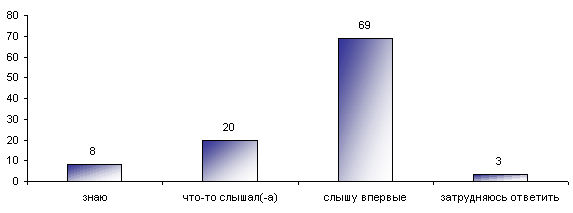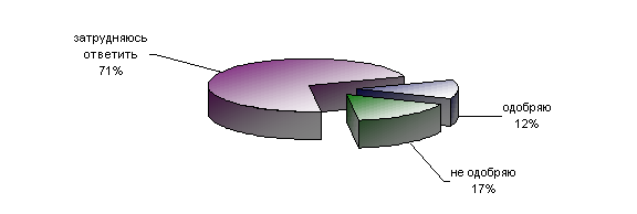 Рассмотрим формирование данного института в графиках, построенных в результате опроса населения в 100 населенных пунктах 44 областей, краев и республик России. Интервью по месту жительства. Результаты опросов за 26-27 февраля 2005 г.. 1500 респондентов. Дополнительный опрос населения Москвы - 600 респондентов. Статистическая погрешность не превышает 3,6%.