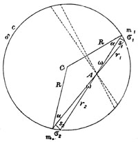 Исаак Ньютон, определив, что силы взаимодействия между двумя массами обратно пропорциональны квадратам расстояний между ними, не остановился на этом. Как всякий глубокий ученый, он рассматривает возможность решения вопроса в случае, если бы, например, планеты Солнечной системы были внутри полыми, то есть снаружи оболочка, а внутри пустота. Произведенные им расчеты показывают, что система будет вести себя так, как будто массы этих планет сосредоточены в их центре. Значит, и в этом случае закон соблюдается [3].