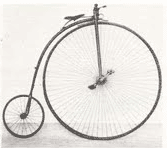 Ещё одним вариантом конструкторского решения был велосипед с передним колесом, намного превосходившим по размеру заднее. Наездник восседал над этим колесом и крутил педали, прикреплённые непосредственно к этому колесу. На него было тяжело взбираться и так же тяжело спускаться. Без посторонней помощи это сделать было почти невозможно. Такой велосипед был ещё и сложен в управлении.