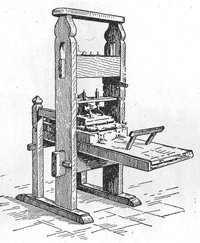 Для печатания были созданы ручные печатные станки. Печатный станок представлял собой ручной пресс, где соединялись две горизонтальные плоскости: на одной плоскости устанавливался наборный шрифт, к другой прижималась бумага. Предварительно матрица покрывалась смесью сажи и льняного масла. Такой станок давал не больше 100 отпечатков в час. Книгопечатание подвижными литерами быстро распространилось в Европе, хотя Гутенберг и предприниматель Фуст, который обеспечивал ему финансовую помощь, пытались сохранить в тайне сделанное изобретение. В Чехии первая книга «Троянская хроника» была напечатана неизвестным печатником уже в 1468 г.