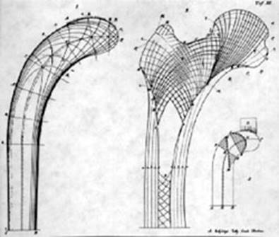 В 1866 году швейцарский инженер Карл Кульман (Carl Cullman) подвел теоретическую базу под открытие фон Мейера, а спустя 20 лет природное распределение нагрузки с помощью кривых суппортов было использовано Эйфелем.