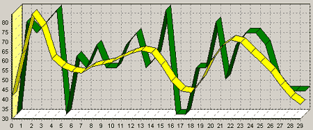 На рисунке видно, что прогноз на последние три недели весьма точен. В данном случае при прогнозировании учитываются оба фактора: прошлогодние продажи, служащие шаблоном для прогнозирования, и тренд, т.е. тенденция, которая сложилась в этом году. Именно это и обусловило качественный прогноз.