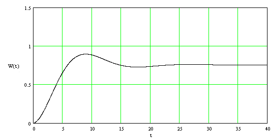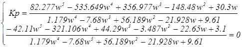 Из второго уравнения системы (1.10) найдем w и подставим это значение в первое уравнение системы. При решении получи, что w = 0.354 и оптимильными параметрами настройки П – регулятора является значение Кр опт = 1.01.
